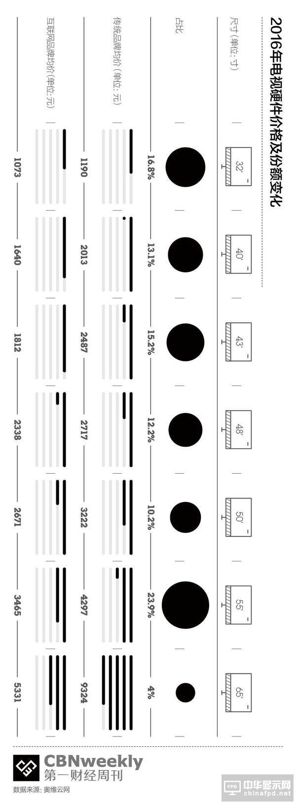 電視作為一種更換周期在5年左右的耐用消費品,購買過程中的線下體驗環節依然重要。然而目前,互聯網品牌更多集中于線上渠道銷售,2016年中國市場電視機銷量中,線上渠道占比達到39%,“互聯網品牌就是電商渠道的金主。”王志國說,品牌不得不配合電商平臺的一貫銷售思路,不斷壓價讓利。