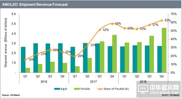 根據IHS Markit提供的AMOLED及柔性顯示屏情報整合報告 (AMOLED & Flexible Display Intelligence Service),大多數智能手機制造商計劃在2017年將柔性AMOLED顯示屏應用于其產品中,但由于價格較高,部分制造商仍然難以接受。
