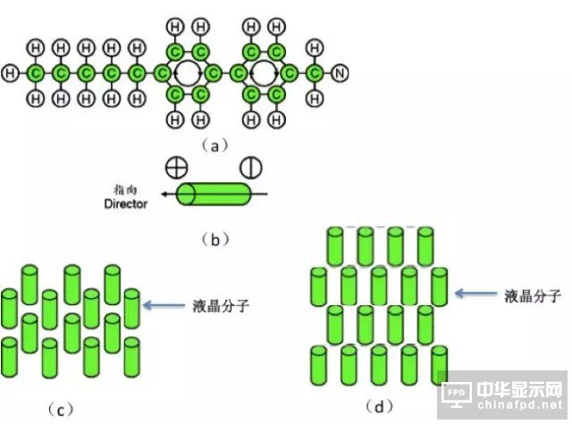 a.向列型液晶(Nematic LC):向列型液晶分子的排列情形如圖一(c)所示,每個分子的長軸都是互相平行,而且方向一致。由于向列型液晶分子對外加電場的反應較大,因此目前商業上生產的液晶顯示器大多使用這種液晶分子。