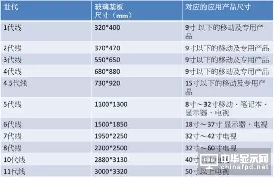 目前主流是六代廠至八代廠之間,七代廠、八代廠的玻璃基板實在太大了,用來制作小尺寸的液晶顯示器不符成本,因此主要是用來制作「液晶電視(LCD TV)」,例如:七代廠玻璃基板尺寸為1950×2250mm,一片基板可以切割出12片32吋的面板、8片40吋的面板或6片46吋的面板,隨著大液晶電視的需求旺盛,八代廠已經不再有優勢,追求更大的尺寸,做更大尺寸與分辨率更高的面板是大趨勢,目前大家爭做10.5代4k與8k就是在搶占制高點。面板的軍備競賽已經開始,后發優勢越來越明顯。