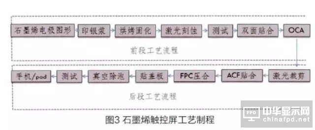 石墨烯觸控模組制程可分為前段sensor工藝和后段的貼合工藝, 前段工藝