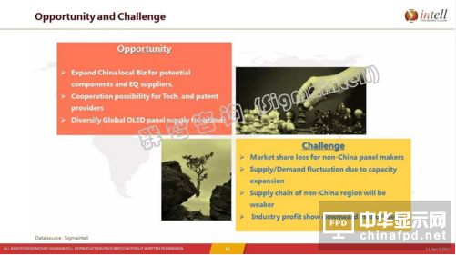 中國廠商的擴張,對全球面板市場而言,是機會也是挑戰。機會方面,中國廠商的擴張意味著將會有更多的面板提供給品牌廠商,面板將會越來越豐富。中國的投資也會給材料、設備、專利廠商帶來機遇。挑戰方面,群智咨詢(Sigmaintell)認為,由于產能的快速擴張,將對整個面板市場供需和價格造成比較大的挑戰。另外,中國廠商的收益性堪憂,今后一段時間中國廠商的收益性仍會偏低。