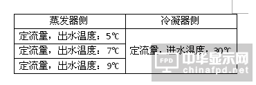 下面整理出相同蒸發器側條件相同時,冷凝器側變流量的性能曲線。這些性能曲線的分別代表運行工況為: