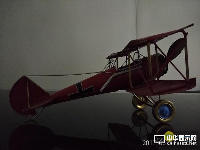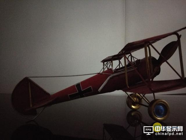 暗處近物,N5的最大快門要比Note4X長(zhǎng),而ISO更低,從飛機(jī)尾翼、螺旋槳等處也可以看到畫面比Note4X更亮。