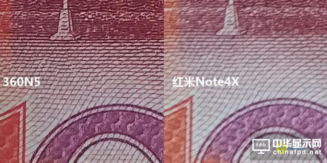 比細(xì)節(jié)的話,N5在近焦處即畫面左側(cè)表現(xiàn)不佳,而在遠(yuǎn)焦處即畫面右側(cè)打贏了Note4X,總體平手。