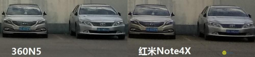 右邊的車同樣是比解析力的好場(chǎng)景,N5這次的優(yōu)勢(shì)就更為明確,兩個(gè)車牌號(hào)都能辨認(rèn),而Note4X只能搞定左邊的603PN,但右邊的9WB02就無(wú)能為力了。解析力上N5勝出。