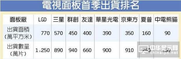 電視面板首季出貨排名