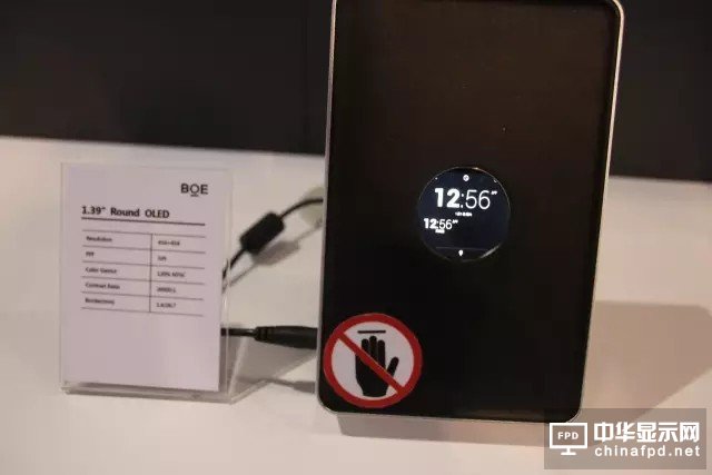 OLED顯示方面,BOE(京東方)展出7.8英寸柔性可折疊顯示屏、1.39英寸圓形OLED手表顯示屏、5.5英寸FHD/QHD雙邊固定曲率顯示屏等。其中7.8英寸柔性可折疊顯示屏剛剛獲得“2017CITE(中國電子信息博覽會)創新產品與應用金獎”,它搭載LTPS AMOLED技術,色域達90%以上,厚度僅為0.24mm,彎曲半徑僅為5mm,展開時可作為平板電腦使用,攜帶時又可折疊成手機大小,可適應多種產品形態。
