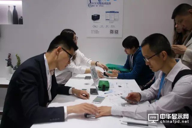 展會現場,眾多參觀者都圍在一個神奇的小黑盒子旁邊駐足體驗。這就是BOE(京東方)最新推出的無創血液監測系統,使用者僅需將手指放入無創多參數檢測儀(MTX),便可在1分鐘之內精確測量并記錄14項血液相關的重要生理參數,且BOE移動健康APP可依照參數提供健康風險預警和管理建議。