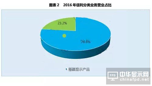 2016年,信利的主要營(yíng)收在液晶體顯示器產(chǎn)品與電子消費(fèi)產(chǎn)品兩大塊,其中液晶顯示器業(yè)務(wù)整年?duì)I收169.52億港元,占比76.8%;電子消費(fèi)產(chǎn)品營(yíng)收51.18億港元,占比23.2%。液晶顯示業(yè)務(wù)較往年有所下滑,但是依然牢牢保持核心業(yè)務(wù)的地位。