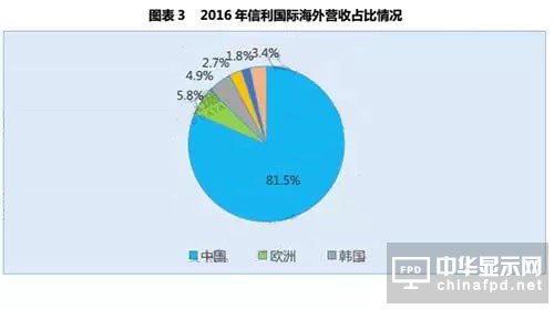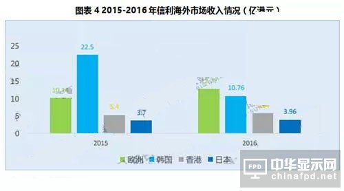 2016年,信利海外市場(chǎng)銷售額達(dá)到了40.91億港元,占總營(yíng)業(yè)額的18.5%,同比降低了14.6%,主要原因是公司在韓國(guó)市場(chǎng)銷售額的大幅下降。