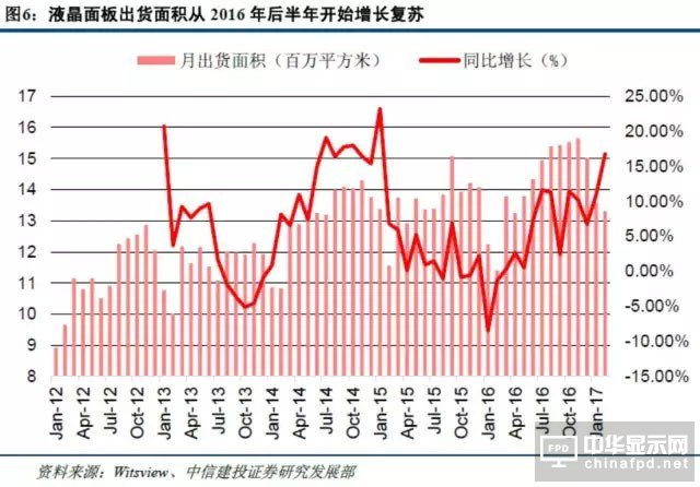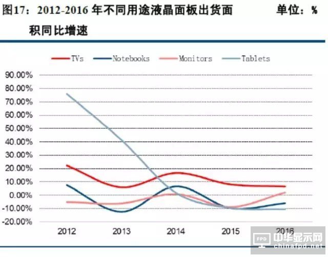 知名咨詢機構Witsview的數據顯示,2010、2012和2014年液晶面板行業經歷了周期的波峰,全球液晶面板出貨面積在上述年度均實現了10%以上的同比增長;而2011、2013和2015年經歷了周期性的低谷,全球液晶面板出貨面積同比增長率均低于4%。