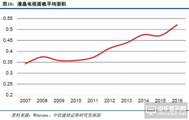 IHS首席分析師Paul Gray表示,“在過去的十年中,電視市場的平均屏幕尺寸每年增加1英寸,在70英寸的電視普及前,屏幕大小還將繼續增加。”至2019年,65英寸及以上尺寸的電視出貨量將以17%的年復合增長率大幅增長。預計未來幾年面板和電視廠商將繼續推動電視的大尺寸化,尤其是60英寸以上面板出貨量與出貨面積將增加,在電視作為大家電保有周期長且設備數需求放緩的情形下,液晶材料行業仍有較大的增長空間。#p#分頁標題#e#