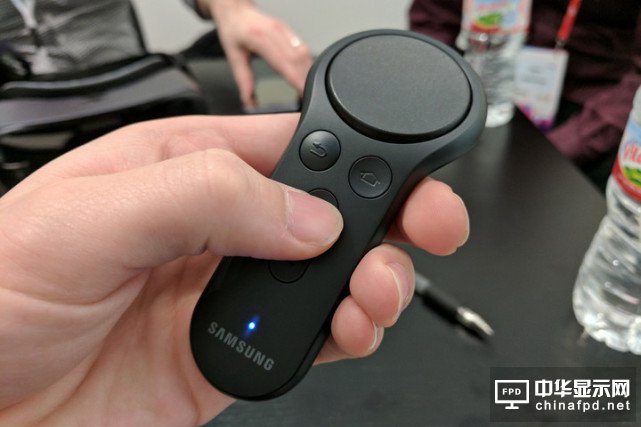 另一方面,三星為最新款的Gear VR配備了Gear VR控制器。這款控制器看起來就像是HTC Vive的同款控制器。它的底部配備了腕帶,防止用戶在激烈使用時(shí)將控制器甩到地上。Gear VR控制器使用的是兩節(jié)AA電池,官方稱電池續(xù)航時(shí)間為40天。此外,這款控制器內(nèi)部還配備了陀螺儀、加速度計(jì)等傳感器。