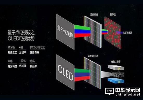 量子點顯示在近兩年來可謂是風生水起,在全球彩電大咖的布局下,頗有“長江后浪推前浪”之勢,定位旗艦高端系列產品,與老牌子韓系OLED相比,量子點是否更具競爭力?OLED TV憑借純凈黑、色域高(輕松達到100%NTCS以上)、響應速度、觀看角度、飽和度、對比度等多項參數(shù)均比LED液晶電視出眾而廣為好評,不過由于真空真鍍的工藝成本昂貴(包括設備投入、材料耗損),在市場里雖然形成終端但最終還是得消費者來“埋單”,而量子點則憑借其獨特的發(fā)光顯示原理,打破了“色域與成本和亮度是矛盾”這一平衡,全球NO.8科學家彭笑剛教授也曾經說過“量子點有可能是人類有史以來發(fā)現(xiàn)的最優(yōu)秀的發(fā)光材料”,那么量子點顯示怎么推動我國彩電行業(yè)快速發(fā)展的呢?