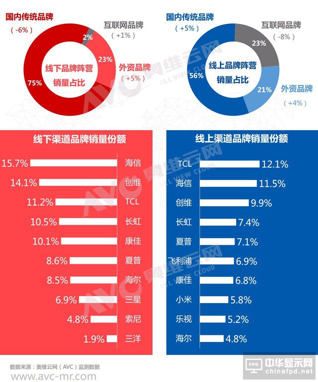 盡管據數據統計,2016年中國彩電品牌出貨量占全球份額已超過30%,包括傳統品牌和互聯網品牌在內的國內品牌活躍度合計超過85%,但在中高端彩電消費者心目中最好的產品似乎依然屬于外資品牌,即使是這幾年外資品牌的銷量一直被國內品牌壓著打,但就在今年五一促銷期間,外資品牌在線上線下分別以4%和5%的份額增長絕地反擊,體現出頑強的生命力。
