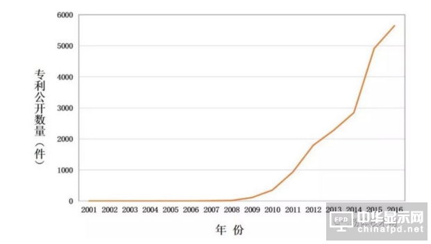 圖5 中國受理的石墨烯公開專利數(shù)量年度變化趨勢(shì)