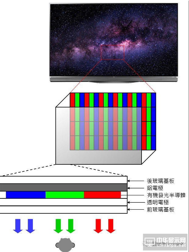 ▲ 圖三:有機(jī)發(fā)光二極管(OLED)構(gòu)造。(Source:LG)