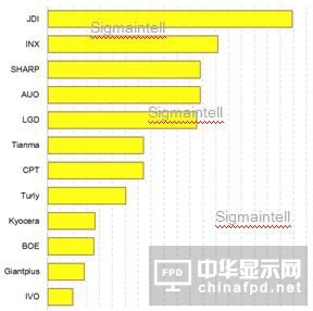 友達光電和LGD作為第四、五名則在中控顯示屏及導航儀這塊發力較強,同比分別增長約7.5%,26.9%。