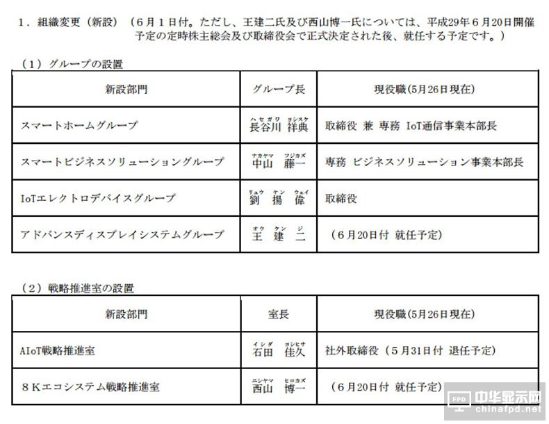 當(dāng)然從日本夏普的角度來(lái)看,由于已完成新的管理結(jié)構(gòu),可以觀察到先進(jìn)顯示事業(yè)及8K生態(tài)系統(tǒng)戰(zhàn)略推進(jìn)室,分別由前鴻海集團(tuán)觸控模塊廠GIS董事暨執(zhí)行副總王建二及原NHK理事西山博一擔(dān)任,再顯示重整夏普顯示器霸主的地位,是集團(tuán)戰(zhàn)略首要目標(biāo),因此進(jìn)一步強(qiáng)化顯示技術(shù)。