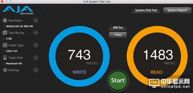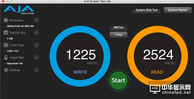 用AJA這款磁盤讀寫測(cè)試工具可以看出,寫入和讀取數(shù)據(jù)分別為1225MB/s和2524MB/s,而上一代約為1325MB/s和2000MB/s(兩款測(cè)試軟件不同,數(shù)值僅作參考),可以看到讀取數(shù)字的提升是明顯的。
