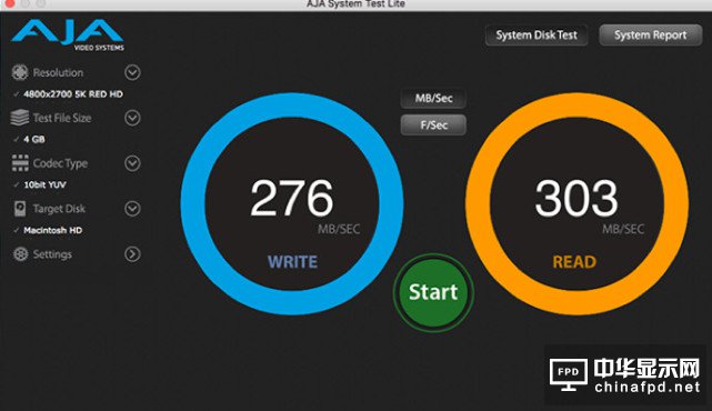 而這一次蘋果大力推廣的Fusion Drive的表現(xiàn)如何呢?我們用AJA進(jìn)行了測(cè)試,在寫入和讀取部分分別得到了276MB/s、303MB/s的成績(jī),可以看到與使用純粹SSD機(jī)型的產(chǎn)品,差距是比較大的。
