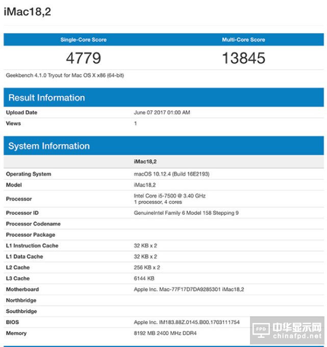 還是先從處理器說起,這次我們拿到的是21.5寸的頂配版,也就是搭載3.4GHz四核i5處理器的那一版,作為最大升級(jí)之處,英特爾Kaby Lake處理器的加入讓這一代iMac有了很多底氣。還是使用GeekBench跑分,單核與多核得分分別為4779、13845,這個(gè)成績(jī)顯然是比上不足比下有余的,如果和27寸iMac相比肯定要矮一截,但是如果和上一代同級(jí)iMac相比,簡(jiǎn)直是翻天覆地的變化,即便在整個(gè)臺(tái)式機(jī)/一體機(jī)陣營(yíng)中考慮,也是處于次頂級(jí)的水準(zhǔn)。