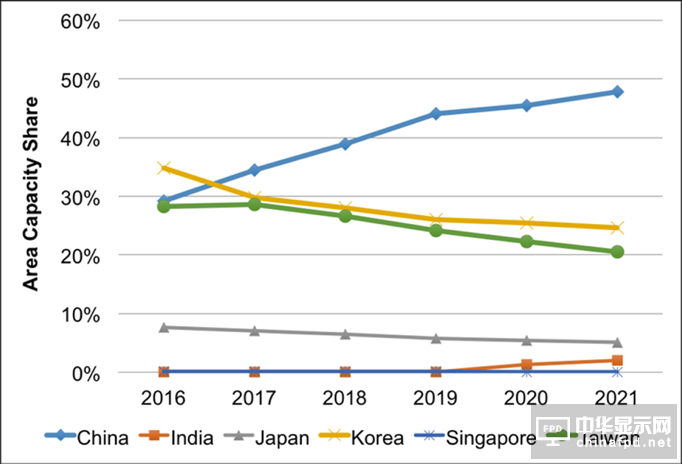 如圖9所示,8.5代線長期占據主導市場,然而,10.5代線增長迅速預計在2021年趕超六代線,占15%份額,六代線從2017-2021年間穩定在15%市占率左右,五代線以下的世代線將掉至2%并且有較多將會關閉。#p#分頁標題#e#