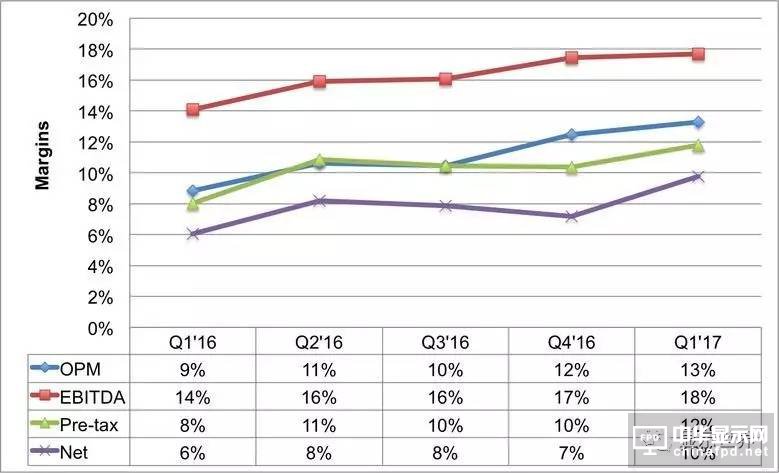 Figure 3: Q1'16 - Q1'17 Margins for Display Equipment Suppliers