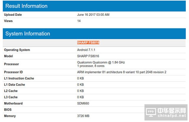 夏普新機現身跑分網站 和OPPO搶奪驍龍660