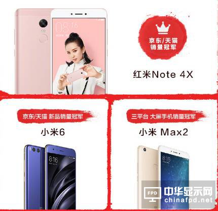 6月19日早間9點17分,小米公司在微博發布捷報,表示小米在618期間拿下了京東、天貓、蘇寧三大平臺的大滿貫,手機銷量蟬聯第一。其中,紅米Note 4X是京東與天貓的手機銷量冠軍;小米6是京東/天貓的新品銷量冠軍;小米Max 2則是三大平臺中大屏手機銷量冠軍。