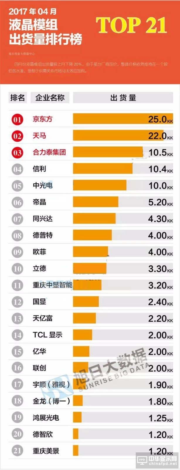 四月份液晶模組出貨量較上月下降20%,由于部分廠商壓價,整體價格依然維持在一個較低的水準,受制于供需關系市場馬太效應加劇。