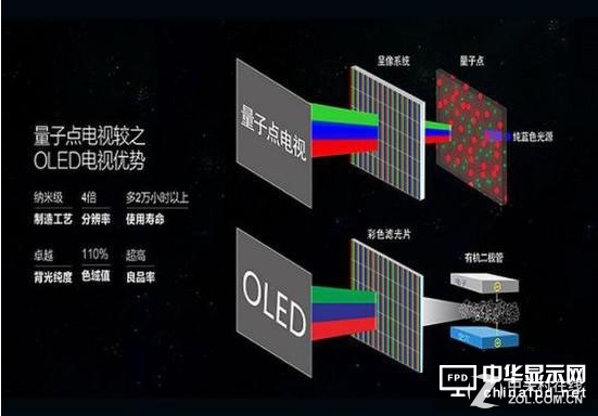 量子點這兩年可以說是風生水起,頗有長江后浪推前浪之勢,定位于高端產品,于OLED相比,量子點的競爭力在哪呢?OLED憑借純凈黑、色域高、響應速度、觀看角度、飽和度、對比度等多項參數均比LED液晶出眾而廣為好評,不過由于真空真鍍的工藝成本昂貴。