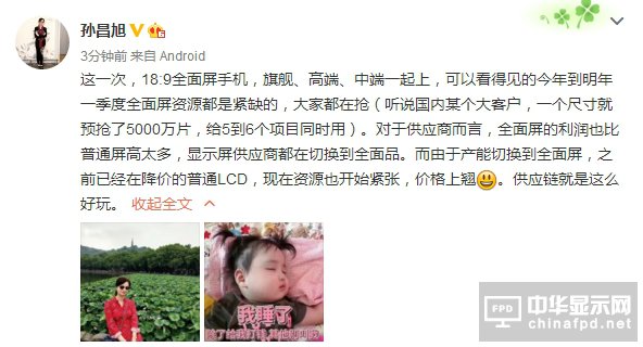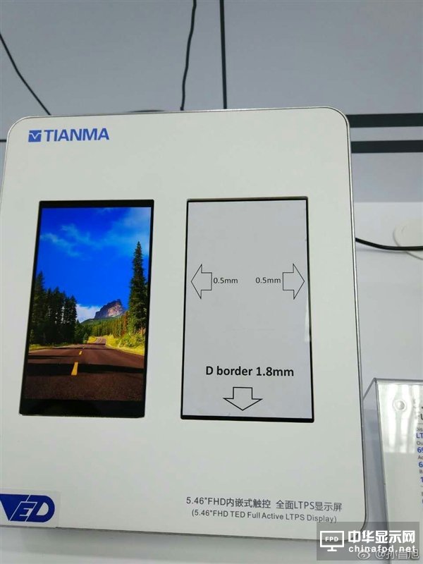 在此之前,天馬在臺北電腦展上已經推出一款18:9的全面屏,其左右邊框只有0.5mm,下邊框只有1.8mm,6月底出樣。