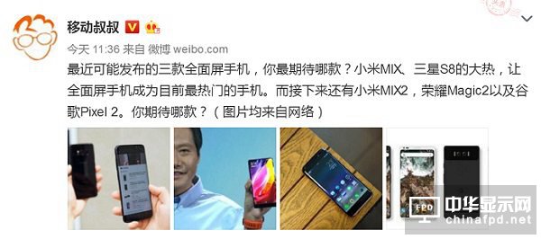 業(yè)內人士 @Kevin王的日記本 日前發(fā)布了一條關于此款屏幕的微博,引發(fā)了熱烈的討論,大多數(shù)網(wǎng)友認為小米 MIX 2 將率先使用這款屏幕。
