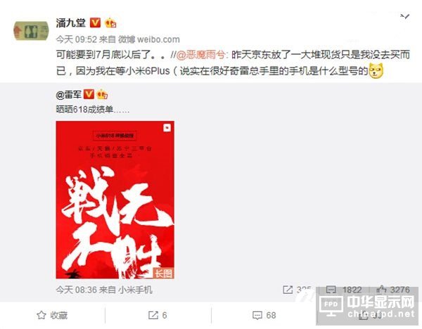 有用戶在雷軍微博下詢問關于小米6 Plus的的相關問題時,分析師@潘九堂 轉發(fā)回應道“可能要到7月底以后了”,因此最早的發(fā)布時間可能會在8月初。