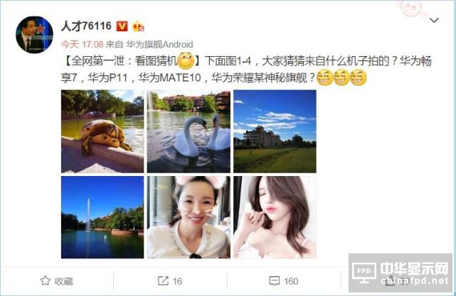 最近小米和魅族新機被炒得火熱,這使得華為似乎不甘心流量被對手占據,準備放出新機消息來吸引眼球。日前,網友@人才76116發布的微博稱:“全網第一泄:看圖猜機”并放出四張拍照樣張,讓大家猜測到底是什么手機拍攝,至于給出的候選機型則都是尚未發布的產品,包括下華為暢享7,華為P11,華為Mate 10以及華為榮耀某神秘旗艦。