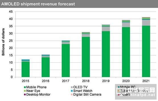 基于產能增加,AMOLED電視面板市場預計將從去年的89萬片增至今年的150萬片。到2021年,AMOLED面板市場預計將以22%的復合年成長率(CAGR)擴張,超過400億美元。