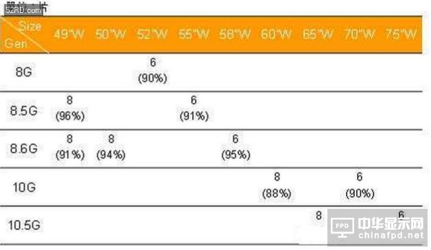 10.5/11代生產(chǎn)線除可生產(chǎn)65寸以上面板之外,對(duì)于30寸至43寸之間的面板也有很高的經(jīng)濟(jì)切割效率,可和目前最普遍的8.5代生產(chǎn)線搭配,豐富面板廠商的產(chǎn)品組合并提高生產(chǎn)效率。