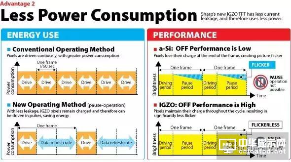 IGZO材料TFT有多低流動性,比傳統的非晶硅形成的埃拉 (準分子激光退火),在約10平方厘米/V-秒,流動性是大于10的非晶硅,IGZO使用銦、鎵、鋅、 氧氣,取代了傳統的非晶硅基于現用圖層。