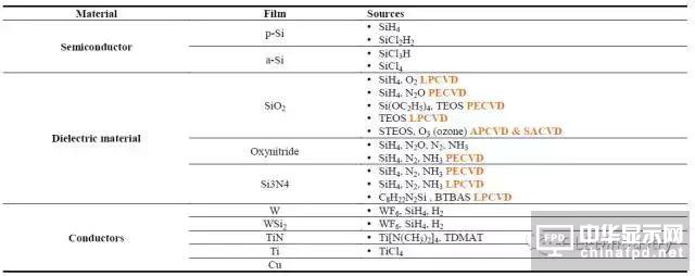 Table 2 可用CVD 成膜的材料和氣體源