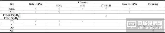 • SiNx 絕緣膜:通過SiH4、N2 和NH3 混合氣體作為反應氣體, 通過輝光放電生成等離子在襯底上成膜。