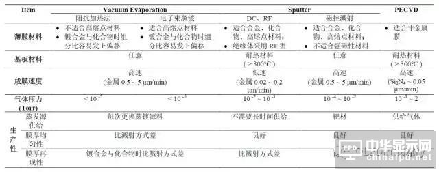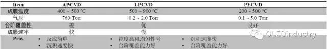 Table 3 Display 制造中幾種CVD 技術的優缺點(1)