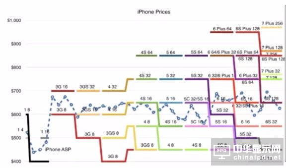 既然產(chǎn)能不足,那么“物以稀為貴”的道理自然適應(yīng)于iPhone 8,再加上其本身“紀(jì)念版”的定位,所以售價達(dá)1000美元就不足為奇了。另外通過iPhone近年來的售價變化圖也可以看出,蘋果不斷通過提升存儲容量等方式提升售價,以保持毛利率,全新設(shè)計、功能更強(qiáng)的iPhone 8自然更有理由賣得更貴。