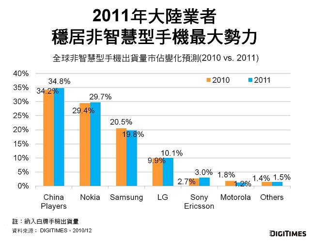 另一方面,智能型手機(Smartphone)采用觸控面板比重持續升高,幾乎完全取代PDA功能,且占整體手機比例亦逐年提高;除此之外,自從臺灣芯片廠聯發科推出山寨機用基頻IC公版,并將電阻式觸控面板控制IC內建于基頻IC公版中,幾乎已使觸控面板成為山寨機標準配備,目前滲透率超過7成。因此,整體而言,手機應用已突破整體中小尺寸觸控面板出貨量7成。