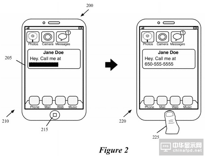 該專利書中的圖片顯示了用戶通過生物識別驗證后,短信中的個人信息才會顯示的過程。