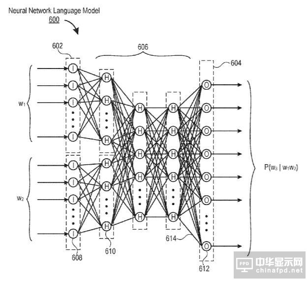 蘋果最新一次申請相關專利是在2016年五月,表示語音對文本和Siri的自然語言處理將會是蘋果在人工智能方面的重點關注。這項專利名為“將神經(jīng)網(wǎng)絡語言模型應用于自動語音識別加權有限狀態(tài)感應器“,詳細介紹了自然語言處理的神經(jīng)網(wǎng)絡過程,如下所示。