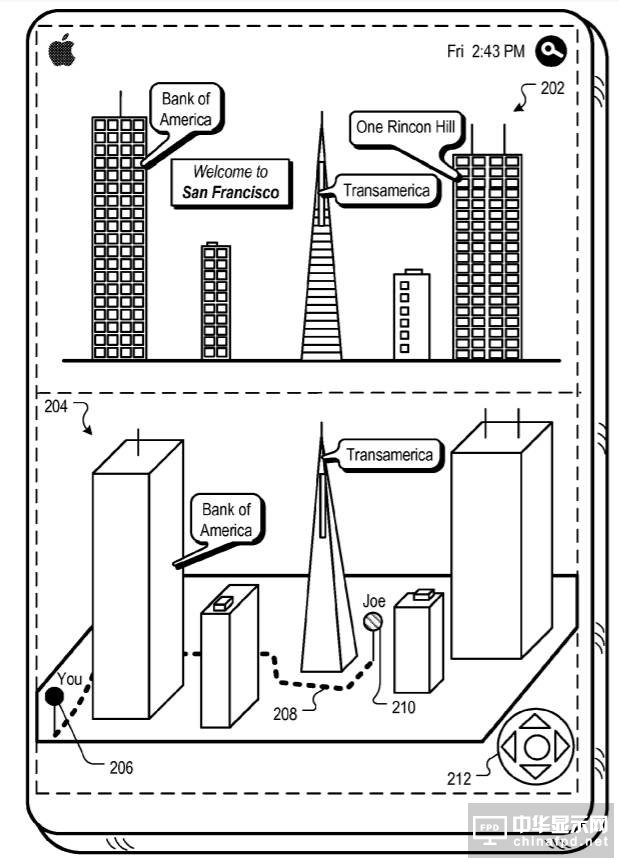 蘋果表示出其占據(jù)增強現(xiàn)實市場的野心。目前在增強現(xiàn)實方面,蘋果有3項應用和6項專利。下圖是2016年蘋果申請的一項增強現(xiàn)實地圖專利,可以看到AR輕松覆蓋現(xiàn)實場景的效果。