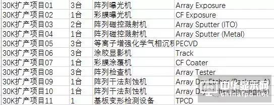 G10.5線、30K擴產線首批招標產品相似,以Array和CF制程設備為主