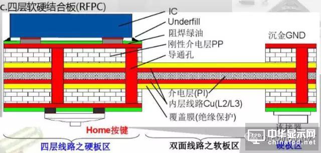軟板和硬板的結合,軟板部分可以彎曲,硬板部分可以承載重的器件,形成三維的電路板。